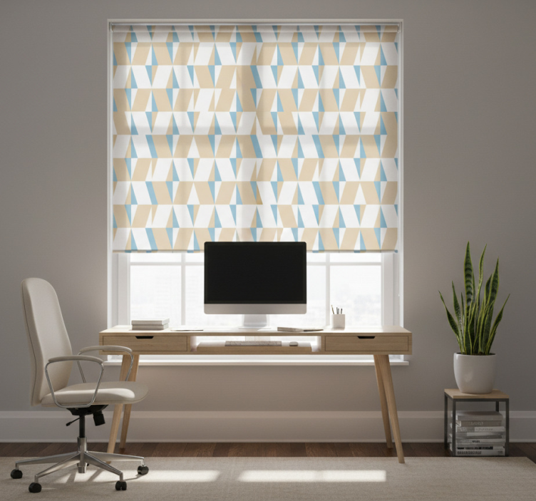Rolo zavjese kućni ured u geometrijskim minimalnim oblicima