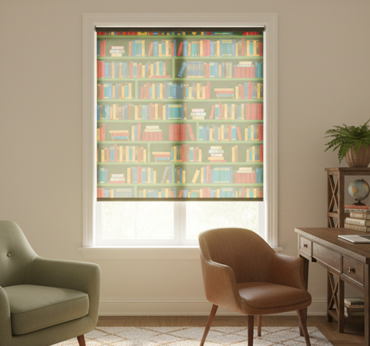 Rolo zavjese kućni ured u vintage zelenoj knjižnici