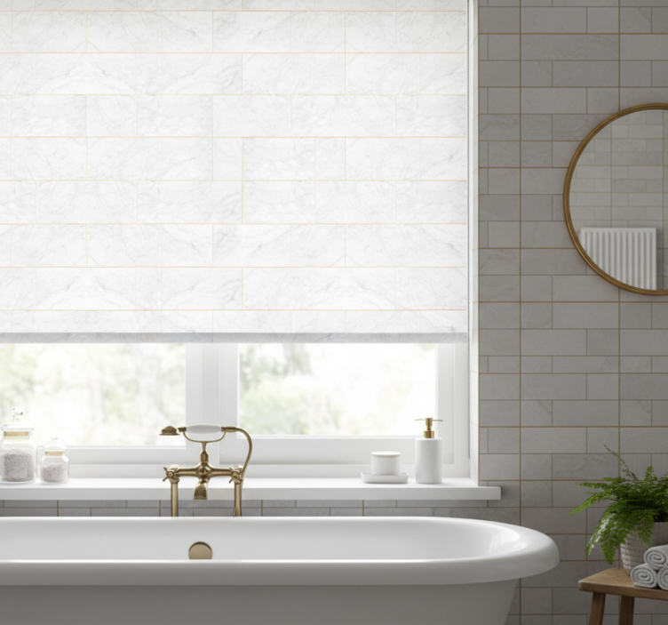 Rolo zavjese kupaonica u sivim tonovima zlatnog mramora