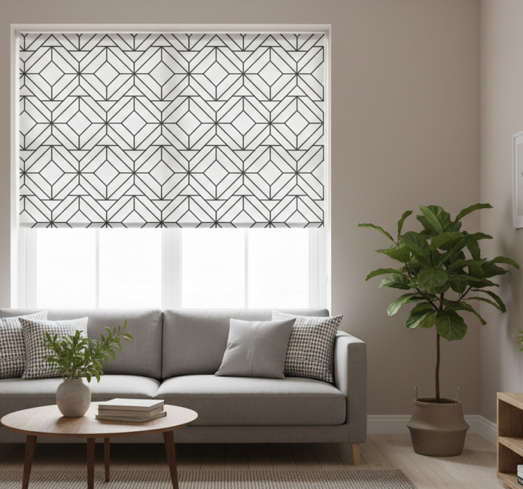 Rolo zavjese moderna s crno-bijelim geometrijskim uzorkom