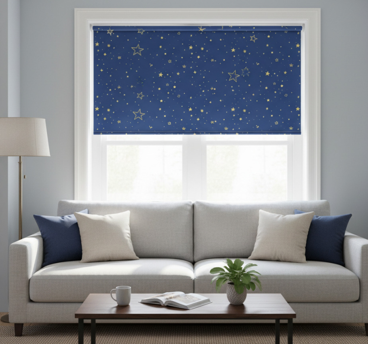 Rolo zavjese moderna zlatne zvijezde na plavoj pozadini