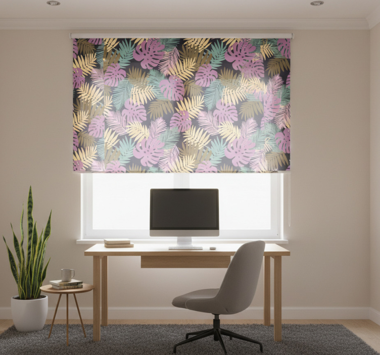 Rolo zavjese ured s tropskim zelenim i ružičastim listovima