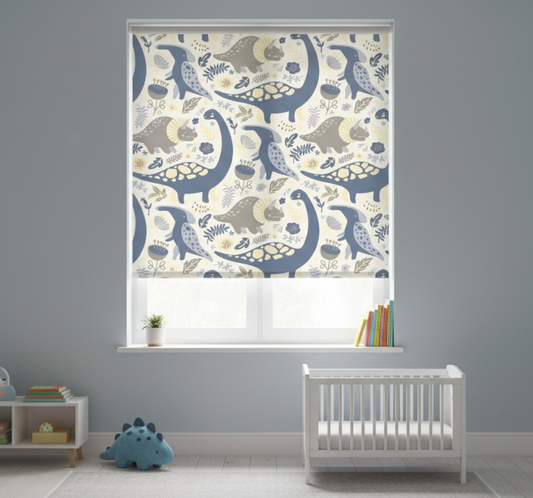 Zavjese za dječju sobu plavi dinosauri nordijskog stila