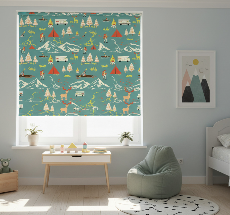 Zavjese za dječju sobu s kamperskim likom, drvećem i stazom