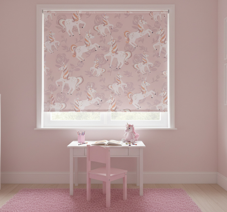 Zavjese za dječju sobu s ružičastim jednorogom i cvijećem