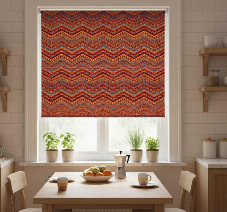 Zavjese za kuhinju u crvenim tribalnim uzorcima