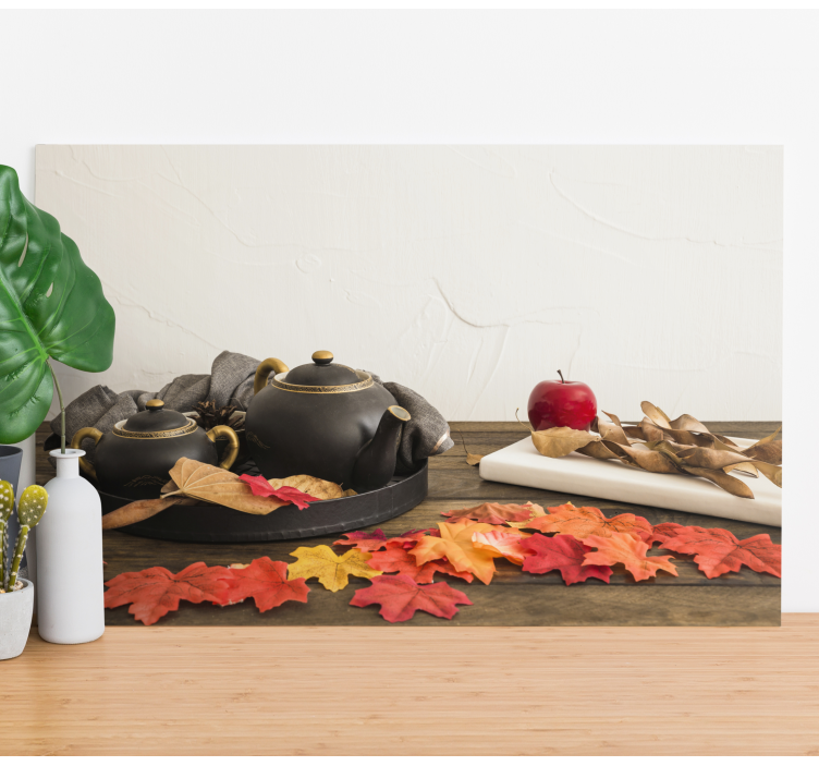 U našem predivnom Slika na platnu krajolici jesenski čajni aranžman nalazimo očaravajući grafički dizajn koji prikazuje čajnike, odbor, i jesenje lišće u rustikalnoj atmosferi. Ova mrtva priroda savršeno dočarava duh jeseni, dok se na stolu nalaze zrele jabuke koje dodatno obogaćuju vizualni dojam. Svi ovi elementi stvaraju skladan i inspirativan prikaz za svaki prostor!