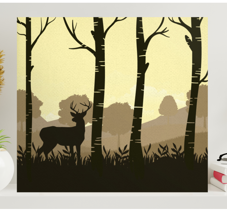 Slika na platnu jelen u silueti među drvećem predstavlja jedinstveni spoj prirode i umjetnosti, gdje jeleni plešu u beskrajnom plavetnilu, a drveće im daje savršenu pozadinu. Ovaj krajolik je ispunjen travu i lišće, stvarajući savršenu harmoniju između divljih životinja i prirode. Njegova silueta u kombinaciji sa svim tim elementima donosi mir i eleganciju u svaki prostor.