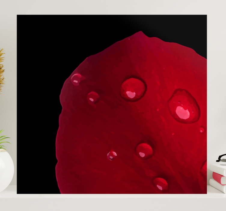 Izbliza latice crvene ruže s prozirnim bistrim kapljicama vode i crnom kontrastnom pozadinom