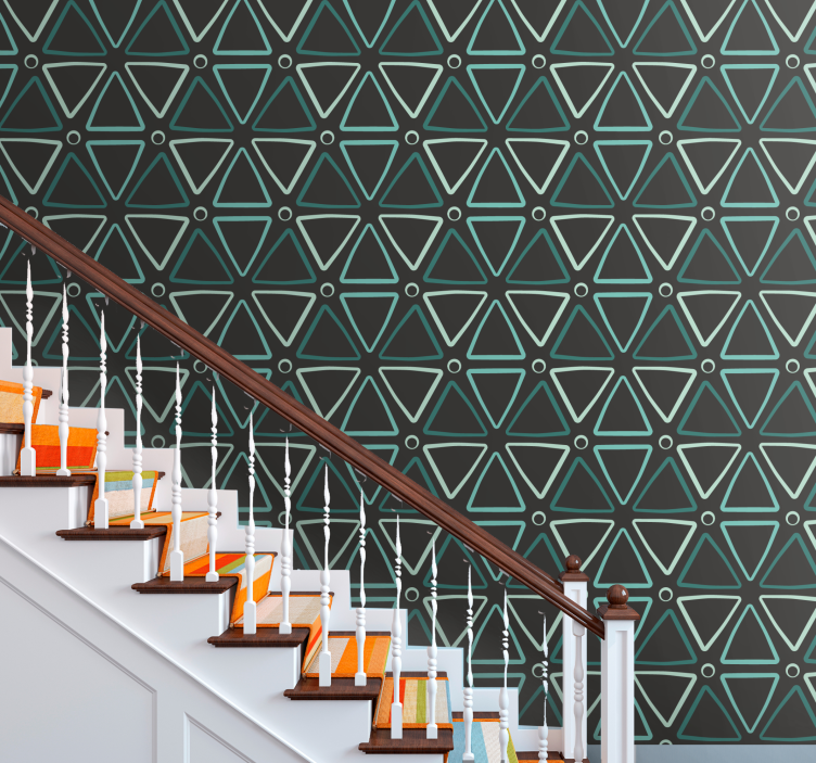 s bešavnim uzorkom zelenih i plavih trokuta na tamno sivoj pozadini. Ovaj proizvod je idealan za nanošenje na zidvašeg hodnika