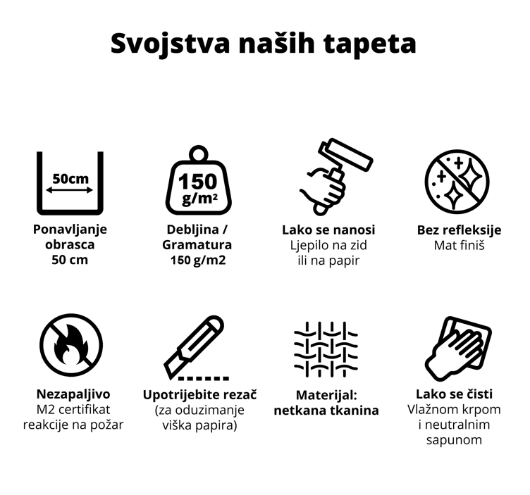 * Zbog procesa sušenja ljepila, ne preporučuje se nanošenje tapeta u sobama s niskom vlagom i temperaturama manjima od 10°C. Optimalna sobna temperatura za vrijeme nanošenja i sušenja je između 18 i 21°C