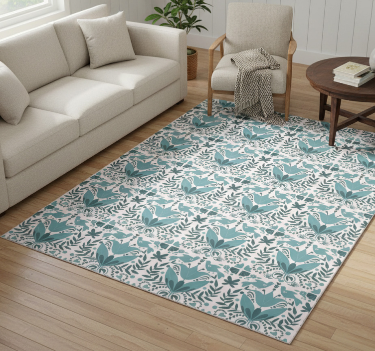 Vinil podovi cvijeće i biljke s plavim ptičjim uzorkom